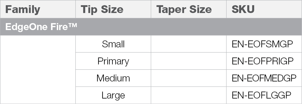 You can use Edge Gutta Points to fill cases shaped by any popular file (including: WaveOne®, ProTaper®, GT® or GT Series X®, Vortex®, ProFile®, Sequence®, K3®, or TF File®) — to provide great, beautiful fills. It will fill all tip sizes and tapers.